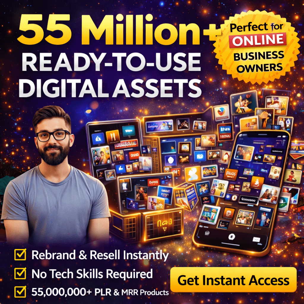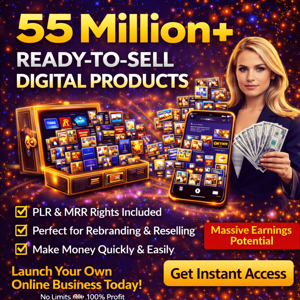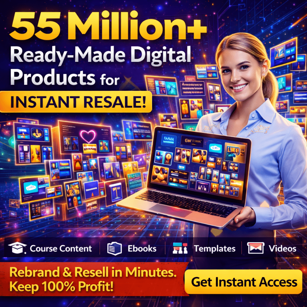 Get instant access to 55 Million+ ready-to-use digital products, templates, courses, tools & assets with full PLR & MRR rights. Rebrand, resell, and keep 100% profit.