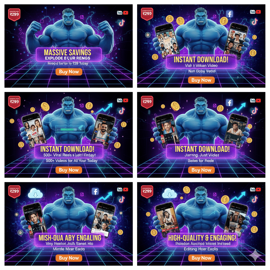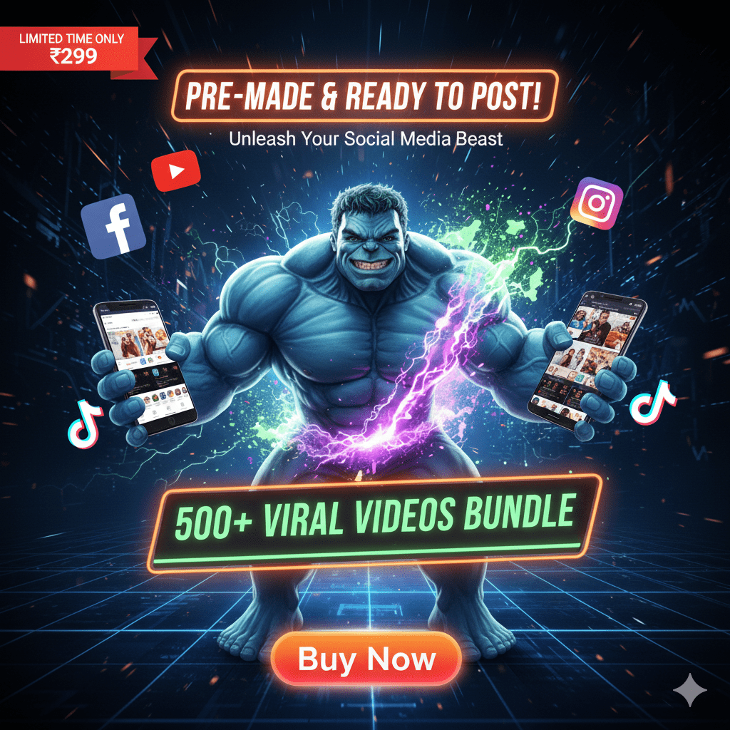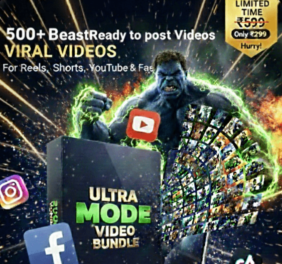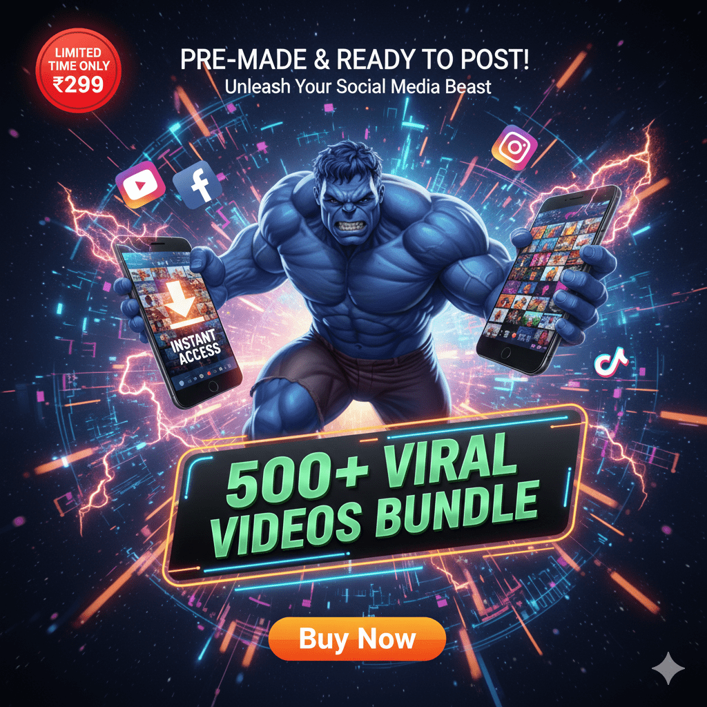 You get 500+ premium viral videos for just ₹299 — a fraction of what you’d pay for editing tools, freelancers, or agencies.